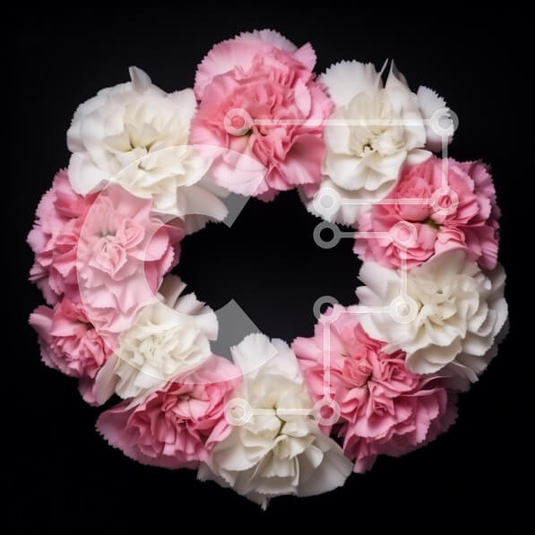Υπάρχει δυνατότητα προσωποποίησης με δική σας φωτογραφία και προσαρμογής διαστάσεων κατόπιν παραγγελίας. Το συγεκεριμενο puzzle παρουσιαζει Αυτή η εικόνα παρουσιάζει ένα όμορφο λουλουδένιο στεφάνι που αποτελείται από ροζ και λευκά γαρίφαλα τοποθετημένα σε κυκλικό σχήμα σε μαύρο φόντο. Τα λουλούδια είναι πλούσια και γεμάτα, δημιουργώντας μια ζωντανή αντίθεση με το σκοτεινό σκηνικό. Οι ροζ και λευκές αποχρώσεις των
