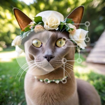 Υπάρχει δυνατότητα προσωποποίησης με δική σας φωτογραφία και προσαρμογής διαστάσεων κατόπιν παραγγελίας. Το συγεκεριμενο Puzzle 10x10 cm – 25 κομμ παρουσιαζει Αυτή η εικόνα απεικονίζει μια καφέ γάτα με λαμπερά κίτρινα μάτια και ένα κομψό λουλουδένιο στέμμα να κάθεται στο γρασίδι. Η γάτα φαίνεται να απολαμβάνει την ύπαιθρο φορώντας το στέμμα, προσθέτοντας μια νότα γοητείας και κομψότητας στη σκηνή.