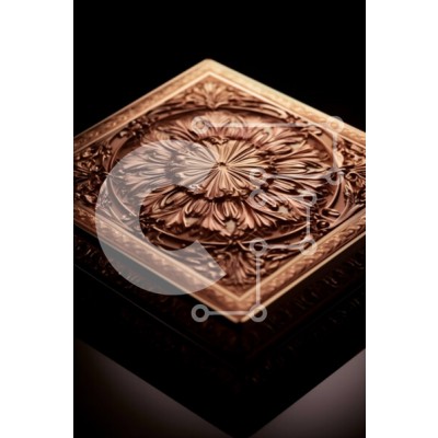 Υπάρχει δυνατότητα προσωποποίησης με δική σας φωτογραφία και προσαρμογής διαστάσεων κατόπιν παραγγελίας. Το συγεκεριμενο puzzle παρουσιαζει Αυτή η εικόνα είναι μια κοντινή όψη ενός διακοσμητικού μεταλλικού πλακιδίου οροφής με σχέδιο λουλουδιών. Το πλακάκι είναι κατασκευασμένο από σκούρο μέταλλο με ματ φινίρισμα και διαθέτει περίπλοκο σχέδιο από λουλούδια και φύλλα. Το πλακάκι τοποθετείται σε μαύρη επιφάνεια, πιθαν