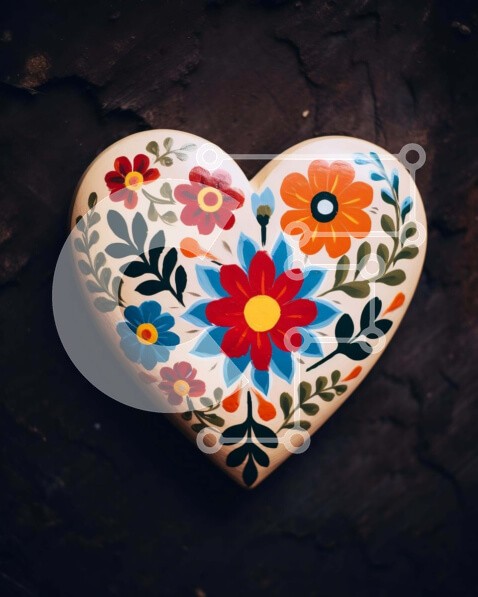 Υπάρχει δυνατότητα προσωποποίησης με δική σας φωτογραφία και προσαρμογής διαστάσεων κατόπιν παραγγελίας. Το συγεκεριμενο Puzzle 10x10 cm – 25 κομμ παρουσιαζει Η εικόνα απαθανατίζει ένα αντικείμενο σε σχήμα καρδιάς στολισμένο με πολύχρωμα λουλουδάτα σχέδια, που στηρίζεται σε μια παλιά ξύλινη επιφάνεια. Διάφορα μικρά αντικείμενα, όπως βάζα, κύπελλα και πιάτα, είναι διασκορπισμένα σε όλο το δωμάτιο.