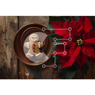 Υπάρχει δυνατότητα προσωποποίησης με δική σας φωτογραφία και προσαρμογής διαστάσεων κατόπιν παραγγελίας. Το συγεκεριμενο Puzzle 10x10 cm – 25 κομμ παρουσιαζει Αυτή η εικόνα παρουσιάζει ένα υπέροχο μπισκότο με μελόψωμο, τοποθετημένο σε ένα καφέ πιάτο, που περιβάλλεται από εορταστικά κόκκινα φύλλα και λουλούδια. Το μπισκότο έχει ένα χαμογελαστό πρόσωπο, στολισμένο με λευκό γλάσο και κόκκινα κουμπιά