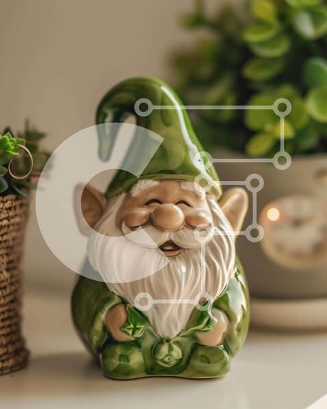 Υπάρχει δυνατότητα προσωποποίησης με δική σας φωτογραφία και προσαρμογής διαστάσεων κατόπιν παραγγελίας. Το συγεκεριμενο Puzzle 10x10 cm – 25 κομμ παρουσιαζει Η εικόνα δείχνει ένα πράσινο ειδώλιο καλικάντζαρο τοποθετημένο δίπλα σε δύο φυτά σε γλάστρες σε ένα τραπέζι. Στο βάθος, υπάρχει ένα μικρό ρολόι, που υπαινίσσεται την πιθανή χρήση του για χρονομέτρηση συμβάντων. Ένα διακοσμητικό φυτό κοντά στ
