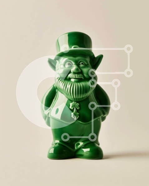 Υπάρχει δυνατότητα προσωποποίησης με δική σας φωτογραφία και προσαρμογής διαστάσεων κατόπιν παραγγελίας. Το συγεκεριμενο Puzzle 10x10 cm – 25 κομμ παρουσιαζει Αυτή η εικόνα παρουσιάζει ένα πράσινο κεραμικό ειδώλιο ενός ιρλανδικού καλικάντζαρο. Το ειδώλιο στέκεται όρθιο με το κεφάλι γερμένο προς τα κάτω και τα χέρια ακουμπισμένα στα γόνατα. Πολλά νομίσματα είναι ορατά στο πλάι του ειδώλου, προσθέτο