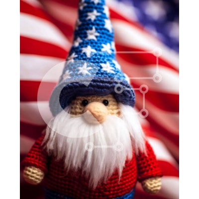 Υπάρχει δυνατότητα προσωποποίησης με δική σας φωτογραφία και προσαρμογής διαστάσεων κατόπιν παραγγελίας. Το συγεκεριμενο puzzle παρουσιαζει Η εικόνα απεικονίζει ένα κροσέ gnome που κάθεται μπροστά από μια αμερικανική σημαία. Είναι ντυμένο με κόκκινα, λευκά και μπλε ρούχα, υποδηλώνοντας ότι έγινε για τη γιορτή της 4ης Ιουλίου. Υπάρχουν πολλά αστέρια και ρίγες ορατά στο φόντο της εικόνας, τα οποία θα μπορούσαν να χρ