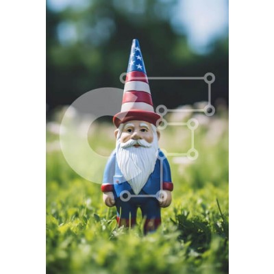 Υπάρχει δυνατότητα προσωποποίησης με δική σας φωτογραφία και προσαρμογής διαστάσεων κατόπιν παραγγελίας. Το συγεκεριμενο puzzle παρουσιαζει Η εικόνα δείχνει ένα παιχνίδι καλικάντζαρο με ένα καπέλο αμερικανικής σημαίας να στέκεται σε πράσινο γρασίδι. Πιθανότατα ανήκει σε κάποιον που του αρέσει η κηπουρική, καθώς είναι καλά συντηρημένο και σε καλή κατάσταση. Άλλα μικρά ειδώλια που σχετίζονται με την κηπουρική μπορεί