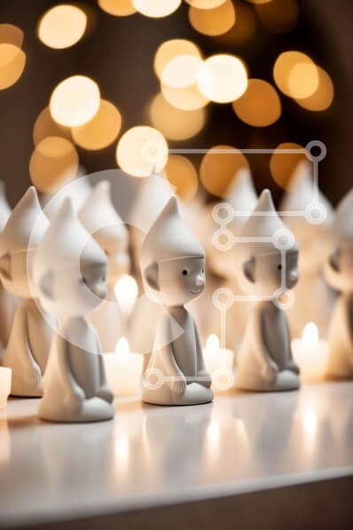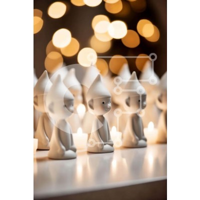 Υπάρχει δυνατότητα προσωποποίησης με δική σας φωτογραφία και προσαρμογής διαστάσεων κατόπιν παραγγελίας. Το συγεκεριμενο puzzle παρουσιαζει Αυτή η εικόνα παρουσιάζει μια ομάδα από λευκά ειδώλια gnome που κάθονται μπροστά από πολλά αναμμένα κεριά. Τα ειδώλια είναι τοποθετημένα σε σειρές, άλλα στραμμένα προς την κάμερα και άλλα προς τα έξω. Μερικά από τα ειδώλια των καλικάντζαρων κρατούν κεριά ενώ άλλα φαίνεται να κ