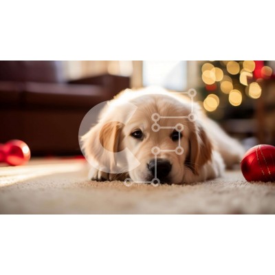 Υπάρχει δυνατότητα προσωποποίησης με δική σας φωτογραφία και προσαρμογής διαστάσεων κατόπιν παραγγελίας. Το συγεκεριμενο Puzzle 10x10 cm – 25 κομμ παρουσιαζει Αυτή η εικόνα απεικονίζει ένα σκυλί Γκόλντεν Ριτρίβερ ξαπλωμένο στο πάτωμα δίπλα σε δύο κόκκινες χριστουγεννιάτικες μπάλες. Ο σκύλος ακουμπά το κεφάλι του σε μια από τις μπάλες, υποδηλώνοντας μια αίσθηση χαλάρωσης και άνεσης. Το δωμάτιο είνα