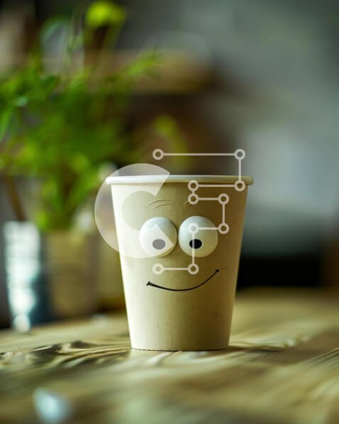 Υπάρχει δυνατότητα προσωποποίησης με δική σας φωτογραφία και προσαρμογής διαστάσεων κατόπιν παραγγελίας. Το συγεκεριμενο Puzzle 10x10 cm – 25 κομμ παρουσιαζει Αυτή η εικόνα παρουσιάζει ένα χάρτινο φλιτζάνι με δύο γυαλιστερά μάτια τοποθετημένα σε ένα ξύλινο τραπέζι. Μπορεί να χρησιμοποιηθεί για να πιείτε καφέ ή τσάι ή για να κρατάτε στυλό ή μολύβια. Ένα μικρό φυτό σε γλάστρα στο βάθος προσθέτει οπτ
