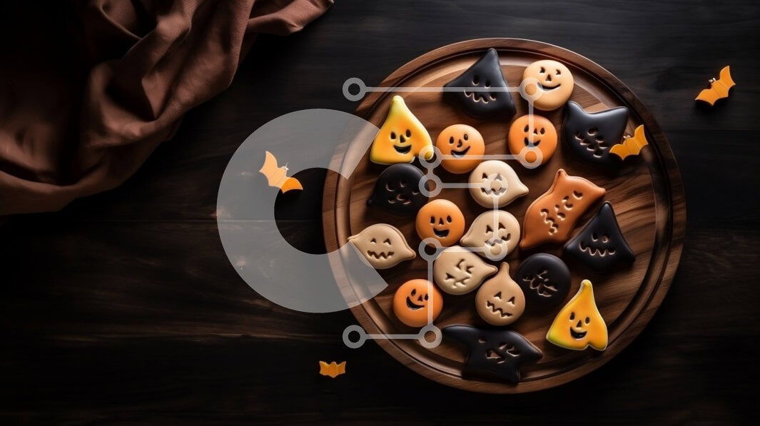Υπάρχει δυνατότητα προσωποποίησης με δική σας φωτογραφία και προσαρμογής διαστάσεων κατόπιν παραγγελίας. Το συγεκεριμενο puzzle παρουσιαζει Αυτή η εικόνα παρουσιάζει μια ξύλινη πιατέλα στολισμένη με μπισκότα με θέμα το Halloween. Τα μπισκότα έχουν περίπλοκο σχήμα σαν κολοκύθες, μάγισσες και νυχτερίδες. Η πιατέλα τοποθετείται σε ρουστίκ ξύλινο φόντο με σχέδιο εμπνευσμένο από το φθινόπωρο, δημιουργώντας ένα εορταστι