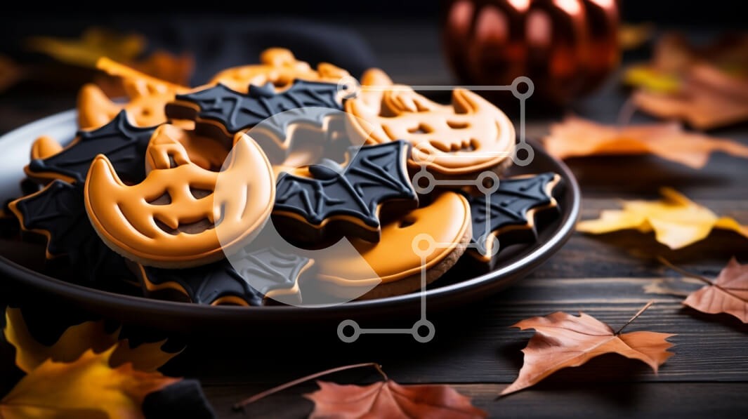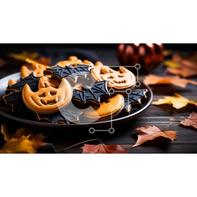 Υπάρχει δυνατότητα προσωποποίησης με δική σας φωτογραφία και προσαρμογής διαστάσεων κατόπιν παραγγελίας. Το συγεκεριμενο puzzle παρουσιαζει Αυτή η εικόνα παρουσιάζει ένα πιάτο με μπισκότα με θέμα το Halloween σε σχήμα νυχτερίδων με πορτοκαλί γλάσο. Τα μπισκότα τοποθετούνται σε σκούρα ξύλινη επιφάνεια και υπάρχουν επίσης πορτοκαλί και καφέ φύλλα. Είναι μια τέλεια εικόνα για να καταγράψετε το τρομακτικό πνεύμα του H