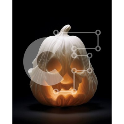Υπάρχει δυνατότητα προσωποποίησης με δική σας φωτογραφία και προσαρμογής διαστάσεων κατόπιν παραγγελίας. Το συγεκεριμενο puzzle παρουσιαζει Αυτή η εικόνα παρουσιάζει ένα γλυπτό λευκής κολοκύθας φωτισμένο στο σκοτάδι. Η κολοκύθα είναι σκαλισμένη από ξύλο ή πλαστικό και είναι μια τέλεια προσθήκη σε κάθε έργο με θέμα το Halloween. Είτε χρησιμοποιείται ως μέρος μιας μεγαλύτερης οθόνης είτε ως αυτόνομη διακόσμηση, το γ
