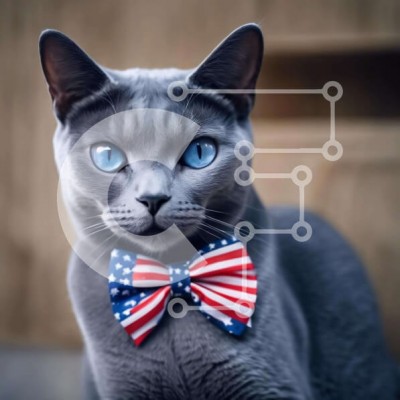 Υπάρχει δυνατότητα προσωποποίησης με δική σας φωτογραφία και προσαρμογής διαστάσεων κατόπιν παραγγελίας. Το συγεκεριμενο Puzzle 10x10 cm – 25 κομμ παρουσιαζει Η εικόνα απεικονίζει μια γκρίζα γάτα που φορά ένα παπιγιόν με θέμα την αμερικανική σημαία. Η γάτα έχει μπλε μάτια και φαίνεται να κοιτάζει την κάμερα. Είναι πιθανό ότι η γάτα ανήκει σε κάποιον που την κατέχει ή τη φροντίζει, καθώς φαίνεται χ