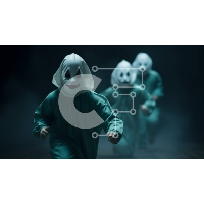 Υπάρχει δυνατότητα προσωποποίησης με δική σας φωτογραφία και προσαρμογής διαστάσεων κατόπιν παραγγελίας. Το συγεκεριμενο puzzle παρουσιαζει Αυτή η εικόνα απεικονίζει μια ομάδα ανθρώπων ντυμένων με λευκά κοστούμια hazmat με ζωγραφισμένα πρόσωπα-φαντάσματα πάνω τους. Περπατούν σε έναν σκοτεινό διάδρομο, με την πηγή αμυδρού φωτός να ρίχνει μια απόκοσμη λάμψη στα πρόσωπά τους. Ένα μοναδικό puzzle που συνδυάζει ποιότη