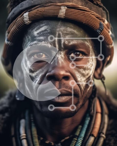 Υπάρχει δυνατότητα προσωποποίησης με δική σας φωτογραφία και προσαρμογής διαστάσεων κατόπιν παραγγελίας. Το συγεκεριμενο puzzle παρουσιαζει Αυτή η εικόνα δείχνει έναν άνδρα που φοράει παραδοσιακή μπογιά προσώπου και κοσμήματα που πιστεύεται ότι είναι από τη φυλή Himba στη Ναμίμπια. Ο άνδρας στέκεται μπροστά σε ένα απλό φόντο, που τονίζει τις λεπτομέρειες των ρούχων και των αξεσουάρ του. Η βαφή προσώπου και τα κοσμ