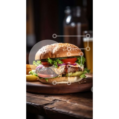 Υπάρχει δυνατότητα προσωποποίησης με δική σας φωτογραφία και προσαρμογής διαστάσεων κατόπιν παραγγελίας. Το συγεκεριμενο Puzzle 10x10 cm – 25 κομμ παρουσιαζει Αυτή η εικόνα παρουσιάζει ένα νόστιμο cheeseburger με μαρούλι, ντομάτα και κρεμμύδι σε ένα μαλακό ψωμάκι, που σερβίρεται μαζί με χρυσές τηγανητές πατάτες. Το μπιφτέκι είναι τέλεια μαγειρεμένο και ζουμερό, και οι επικαλύψεις προσθέτουν μια έκ