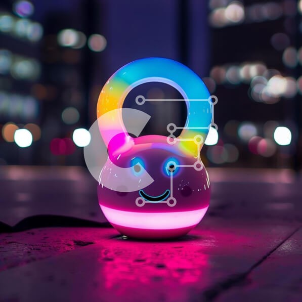 Υπάρχει δυνατότητα προσωποποίησης με δική σας φωτογραφία και προσαρμογής διαστάσεων κατόπιν παραγγελίας. Το συγεκεριμενο Puzzle 10x10 cm – 25 κομμ παρουσιαζει Αυτή η εικόνα παρουσιάζει ένα έντονα φωτισμένο, πολύχρωμο παιχνίδι kettlebell που κάθεται στο πάτωμα μπροστά από έναν φωτισμένο ορίζοντα της πόλης. Το kettlebell είναι διακοσμημένο με διαφορετικά χρώματα και σχέδια, προσθέτοντας στη ζωντανή