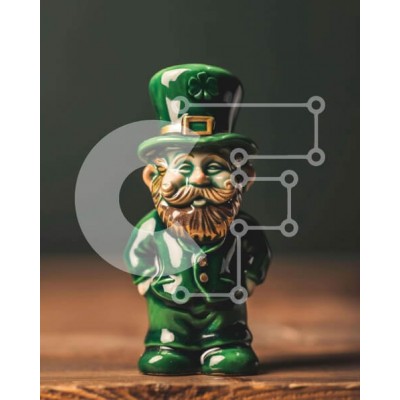 Υπάρχει δυνατότητα προσωποποίησης με δική σας φωτογραφία και προσαρμογής διαστάσεων κατόπιν παραγγελίας. Το συγεκεριμενο Puzzle 10x10 cm – 25 κομμ παρουσιαζει Αυτή η εικόνα παρουσιάζει ένα πράσινο κεραμικό ειδώλιο με γένια και μουστάκι σε στυλ ιρλανδικού καλλικάτζαρου. Το ειδώλιο στέκεται πάνω από ένα ξύλινο τραπέζι, καθιστώντας το ιδανικό για να αναπαραστήσει την Ημέρα του Αγίου Πατρικίου ή άλλες