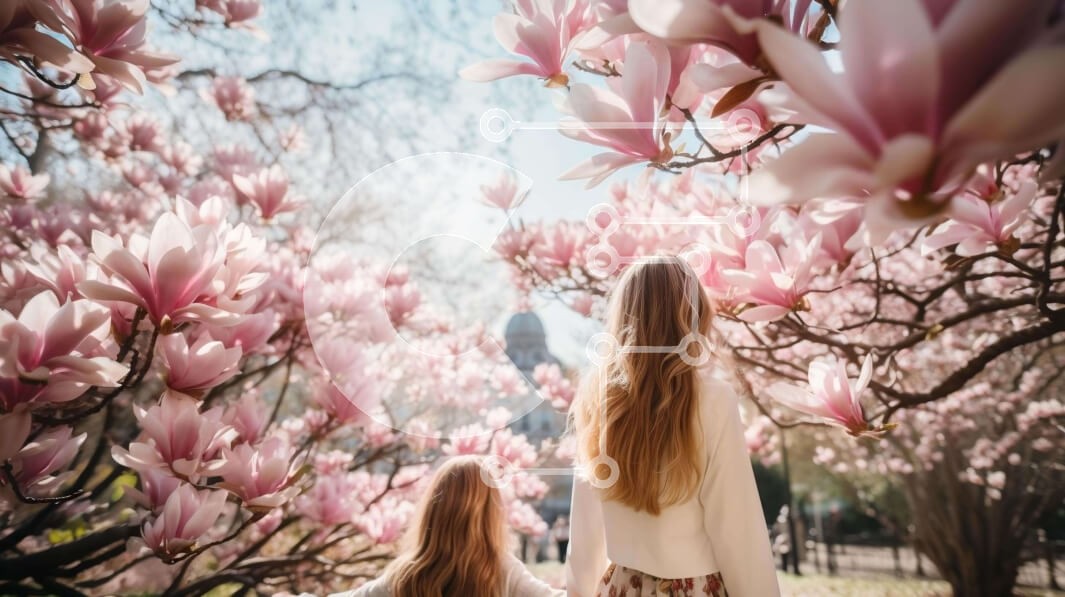 Υπάρχει δυνατότητα προσωποποίησης με δική σας φωτογραφία και προσαρμογής διαστάσεων κατόπιν παραγγελίας. Το συγεκεριμενο puzzle παρουσιαζει Αυτή η εικόνα παρουσιάζει δύο νεαρά κορίτσια που περπατούν μέσα από ένα πάρκο με ροζ δέντρα μανόλια στο βάθος. Απολαμβάνουν ξεκάθαρα την ομορφιά των ανθισμένων λουλουδιών, όπως φαίνεται από τα μακριά, ξανθά μαλλιά τους. Γύρω τους υπάρχουν πολλά πράσινα φύλλα, υποδεικνύοντας ότ