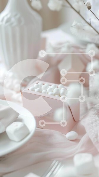 Υπάρχει δυνατότητα προσωποποίησης με δική σας φωτογραφία και προσαρμογής διαστάσεων κατόπιν παραγγελίας. Το συγεκεριμενο Puzzle 10x10 cm – 25 κομμ παρουσιαζει Αυτή η εικόνα παρουσιάζει ένα κομψό σκηνικό τραπεζιού με λευκό τραπεζομάντιλο και ροζ marshmallows. Το τραπέζι είναι στολισμένο με πιάτα, ασημικά και ένα βάζο, προσθέτοντας μια πινελιά κομψότητας. Διάφορα κομμάτια μαχαιροπήρουνων, συμπεριλαμ