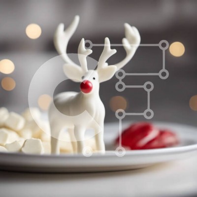 Υπάρχει δυνατότητα προσωποποίησης με δική σας φωτογραφία και προσαρμογής διαστάσεων κατόπιν παραγγελίας. Το συγεκεριμενο puzzle παρουσιαζει Αυτή η εικόνα παρουσιάζει ένα ειδώλιο λευκού ταράνδου τοποθετημένο πάνω από ένα άδειο λευκό πιάτο. Γύρω από το πιάτο υπάρχουν πολλά διάσπαρτα marshmallows, υποδηλώνοντας την παρουσία σνακ ή γλυκών. Επιπλέον, υπάρχουν κόκκινα και λευκά ζαχαρωτά καλάμια κοντά στη μύτη του ελαφιο