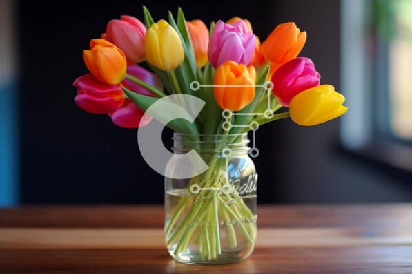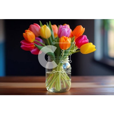 Υπάρχει δυνατότητα προσωποποίησης με δική σας φωτογραφία και προσαρμογής διαστάσεων κατόπιν παραγγελίας. Το συγεκεριμενο puzzle παρουσιαζει Αυτή η εικόνα παρουσιάζει ένα βάζο κτιστών γεμάτο με πολύχρωμες τουλίπες, τοποθετημένο στο κέντρο ενός ξύλινου τραπεζιού. Τα λουλούδια περιβάλλονται από νερό, υποδηλώνοντας τη φρεσκάδα τους, και η ξύλινη επιφάνεια που βρίσκεται κοντά προσθέτει οπτικό ενδιαφέρον στη σκηνή. Ένα