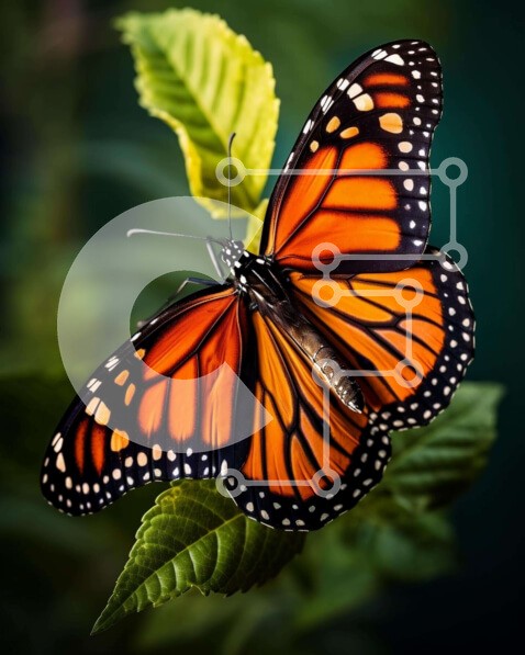 Υπάρχει δυνατότητα προσωποποίησης με δική σας φωτογραφία και προσαρμογής διαστάσεων κατόπιν παραγγελίας. Το συγεκεριμενο puzzle παρουσιαζει Η εικόνα απεικονίζει μια πορτοκαλί και μαύρη πεταλούδα μονάρχη σκαρφαλωμένη σε ένα πράσινο φύλλο. Η πεταλούδα φαίνεται να ακουμπάει στο φύλλο, κάτι που μπορεί να δείχνει ότι τρέφεται από το φυτό. Είναι επίσης πιθανό η πεταλούδα να πετάει, καθώς φαίνεται να πετάει στον αέρα με