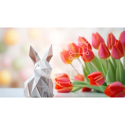 Υπάρχει δυνατότητα προσωποποίησης με δική σας φωτογραφία και προσαρμογής διαστάσεων κατόπιν παραγγελίας. Το συγεκεριμενο puzzle παρουσιαζει Αυτή η εικόνα παρουσιάζει ένα κουνέλι origami τοποθετημένο στο κέντρο ενός τραπεζιού, που περιβάλλεται από μια ποικιλία λουλουδιών, όπως κόκκινες τουλίπες, νάρκισσους, τριαντάφυλλα και γεράνια. Η διάταξη προτείνει ότι θα μπορούσε να χρησιμοποιηθεί ως διακοσμητικό κεντρικό στοι