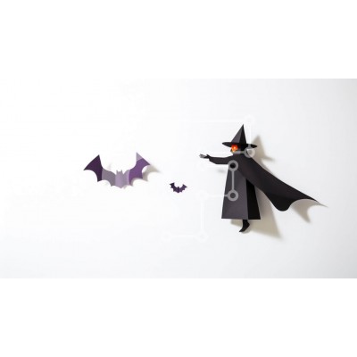 Υπάρχει δυνατότητα προσωποποίησης με δική σας φωτογραφία και προσαρμογής διαστάσεων κατόπιν παραγγελίας. Το συγεκεριμενο puzzle παρουσιαζει Αυτή η εικόνα απεικονίζει μια μάγισσα origami με μαύρο μανδύα και νυχτερίδες να πετούν γύρω της. Είναι τέλειο για αποκριάτικες ή γιορτινές διακοσμήσεις και χειροτεχνίες. Η μάγισσα στέκεται σε λευκό φόντο και υπάρχουν μικρά κομμάτια χαρτιού διάσπαρτα τριγύρω, υποδηλώνοντας ότι