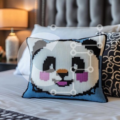 Υπάρχει δυνατότητα προσωποποίησης με δική σας φωτογραφία και προσαρμογής διαστάσεων κατόπιν παραγγελίας. Το συγεκεριμενο puzzle παρουσιαζει Η εικόνα παρουσιάζει ένα διακοσμητικό μαξιλάρι σε ένα κρεβάτι, που δείχνει ένα χαριτωμένο, καρτουνίστικο πρόσωπο panda. Το μαξιλάρι είναι σχεδιασμένο με διάφορα χρώματα, όπως μαύρο, λευκό και γαλάζιο, δίνοντάς του μια παιχνιδιάρικη και χαρούμενη εμφάνιση. Στο βάθος, υπάρχει έν