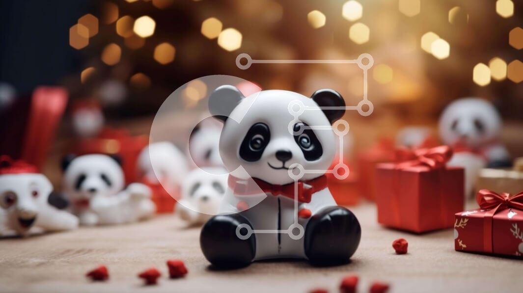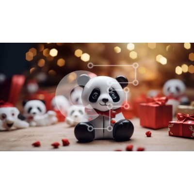 Υπάρχει δυνατότητα προσωποποίησης με δική σας φωτογραφία και προσαρμογής διαστάσεων κατόπιν παραγγελίας. Το συγεκεριμενο puzzle παρουσιαζει Αυτή η εικόνα παρουσιάζει ένα λευκό και μαύρο ειδώλιο αρκούδας πάντα που κάθεται πάνω από πολλά δώρα. Τα δώρα είναι διάσπαρτα γύρω από ένα τραπέζι, υποδηλώνοντας ότι αποτελούν μέρος μιας διάταξης δώρου. Υπάρχουν επίσης μικρά κόκκινα κουτιά που περιβάλλουν το ειδώλιο, προσθέτον