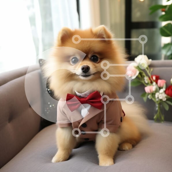 Υπάρχει δυνατότητα προσωποποίησης με δική σας φωτογραφία και προσαρμογής διαστάσεων κατόπιν παραγγελίας. Το συγεκεριμενο Puzzle 10x10 cm – 25 κομμ παρουσιαζει Αυτή η εικόνα παρουσιάζει έναν σκύλο Pomeranian ντυμένο με ένα κομψό κοστούμι με παπιγιόν, καθισμένο σε έναν βελούδινο καναπέ. Η αφράτη γούνα του σκύλου είναι ένα πλούσιο χρυσό χρώμα και έχει μεγάλα, εκφραστικά μάτια που του δίνουν μια αξιολ