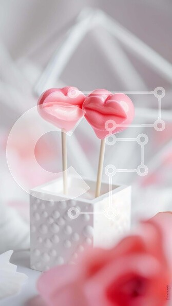 Υπάρχει δυνατότητα προσωποποίησης με δική σας φωτογραφία και προσαρμογής διαστάσεων κατόπιν παραγγελίας. Το συγεκεριμενο Puzzle 10x10 cm – 25 κομμ παρουσιαζει Αυτή η εικόνα παρουσιάζει δύο ροζ λαχανικά σε σχήμα χείλους τοποθετημένα σε ένα λευκό κουτί, το οποίο είναι διακοσμημένο με ροζ τριαντάφυλλα και λουλούδια. Το σκηνικό προτείνει μια ρομαντική και γλυκιά ατμόσφαιρα, ιδανική για τον εορτασμό τη