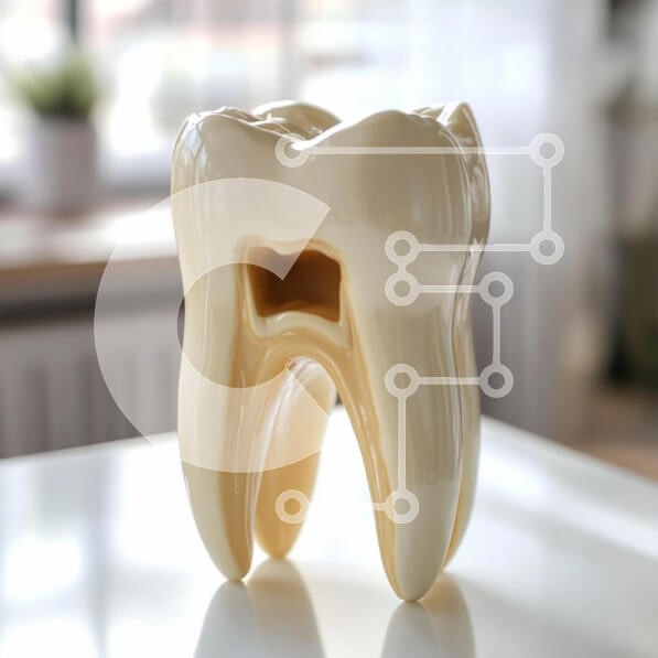 Υπάρχει δυνατότητα προσωποποίησης με δική σας φωτογραφία και προσαρμογής διαστάσεων κατόπιν παραγγελίας. Το συγεκεριμενο puzzle παρουσιαζει Η εικόνα παρουσιάζει ένα μεγάλο, γυαλιστερό κεραμικό μοντέλο ανθρώπινου δοντιού, που δείχνει περίπλοκες λεπτομέρειες όπως οι ρίζες και η κοιλότητα. Το δόντι τοποθετείται σε λευκή επιφάνεια με απαλό φόντο, πιθανότατα σε περιβάλλον οδοντιατρείου ή κλινικής. Το φως αντανακλάται α