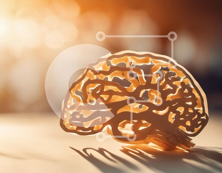 Intra Συλλεκτικό Ξύλινο Παζλ Plywood 4mm - Μοντέλο αποκοπής εγκεφάλου σε πορτοκαλί φόντο Σε Ξύλινο Κουτί - Διαστάσεις Puzzle: 10x10 cm – 25 κομμάτια