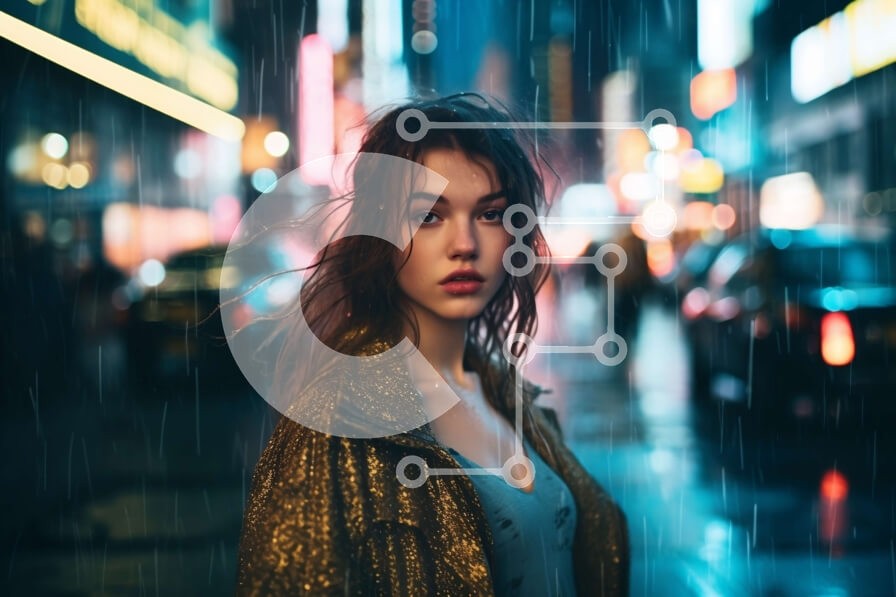 | Όνομα Προϊόντος | Intra Συλλεκτικό Ξύλινο Παζλ Plywood 4mm - Κυκλοθυμική φωτογραφία μιας νεαρής γυναίκας με γυαλιστερό χρυσό σακάκι που στέκεται στη βροχή σε έναν δρόμο της πόλης Σε Ξύλινο Κουτί - Διαστάσεις Puzzle: 10x10 cm – 25 κομμάτια |