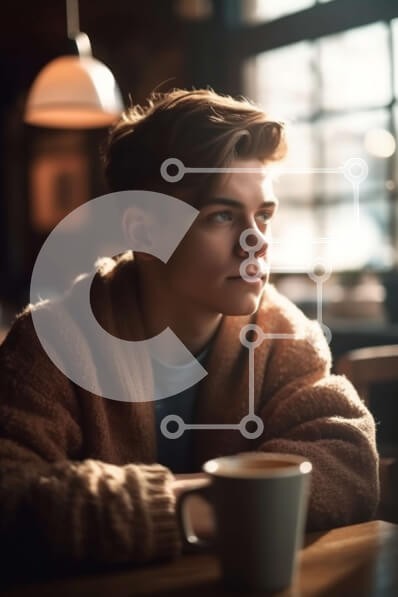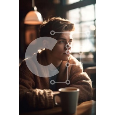 | Όνομα Προϊόντος | Intra Συλλεκτικό Ξύλινο Παζλ Plywood 4mm - Εσωτερική εικόνα ενός νεαρού άνδρα που σκέφτεται τον καφέ σε ένα άνετο καφενείο Σε Ξύλινο Κουτί - Διαστάσεις Puzzle: 10x10 cm – 25 κομμάτια |