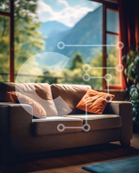 Υπάρχει δυνατότητα προσωποποίησης με δική σας φωτογραφία και προσαρμογής διαστάσεων κατόπιν παραγγελίας. Το συγεκεριμενο puzzle παρουσιαζει Αυτή η εικόνα δείχνει ένα άνετο σαλόνι με έναν καναπέ και δύο πορτοκαλί μαξιλάρια πάνω του. Το δωμάτιο έχει ένα μεγάλο παράθυρο που προσφέρει όμορφη θέα στα βουνά στο βάθος. Το φυσικό φως που περνά από το παράθυρο δημιουργεί μια ζεστή και φιλόξενη ατμόσφαιρα. Ένα μοναδικό puz