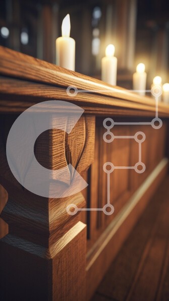 Υπάρχει δυνατότητα προσωποποίησης με δική σας φωτογραφία και προσαρμογής διαστάσεων κατόπιν παραγγελίας. Το συγεκεριμενο puzzle παρουσιαζει Αυτή η εικόνα παρουσιάζει μια κοντινή άποψη ενός περίπλοκα σκαλισμένου ξύλινου κιγκλιδώματος με πολλά αναμμένα λευκά κεριά τοποθετημένα κατά μήκος του. Το ζεστό φως του περιβάλλοντος από τα κεριά φωτίζει απαλά τους πλούσιους κόκκους του ξύλου, αναδεικνύοντας τα λεπτομερή σκαλί