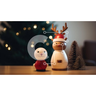 Υπάρχει δυνατότητα προσωποποίησης με δική σας φωτογραφία και προσαρμογής διαστάσεων κατόπιν παραγγελίας. Το συγεκεριμενο puzzle παρουσιαζει Αυτή η εικόνα παρουσιάζει δύο ξύλινα ειδώλια, ένα από τα οποία είναι ένας τάρανδος με κέρατα. Τοποθετούνται δίπλα-δίπλα σε ένα τραπέζι, υποδηλώνοντας μια σύνδεση μεταξύ τους. Επιπλέον, υπάρχει ένα επιπλέον μικρό ειδώλιο τοποθετημένο πάνω τους, υποδηλώνοντας πιθανώς την παρουσί