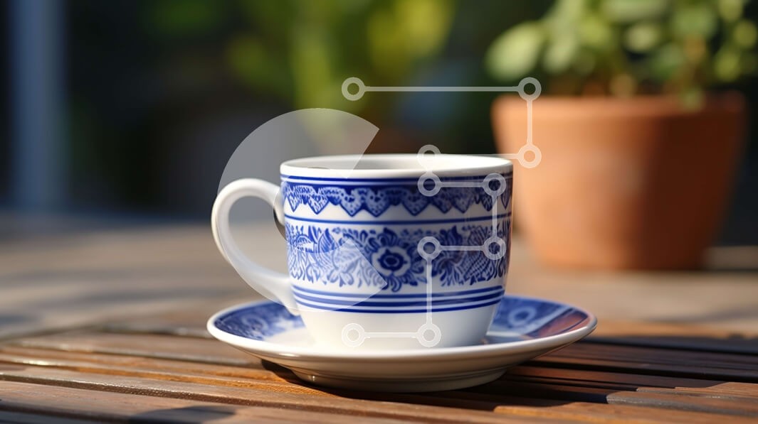 | Όνομα Προϊόντος | Intra Συλλεκτικό Ξύλινο Παζλ Plywood 4mm - Μπλε και άσπρο κεραμικό φλιτζάνι καφέ και πιατάκι σε ξύλινο τραπέζι Σε Ξύλινο Κουτί - Διαστάσεις Puzzle: 10x10 cm – 25 κομμάτια |