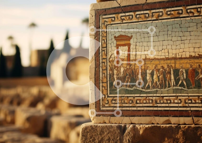 | Όνομα Προϊόντος | Intra Συλλεκτικό Ξύλινο Παζλ Plywood 4mm - Αρχαίο ψηφιδωτό κεραμίδι με ανθρώπους που περπατούν στην ύπαιθρο Σε Ξύλινο Κουτί - Διαστάσεις Puzzle: 10x10 cm – 25 κομμάτια |