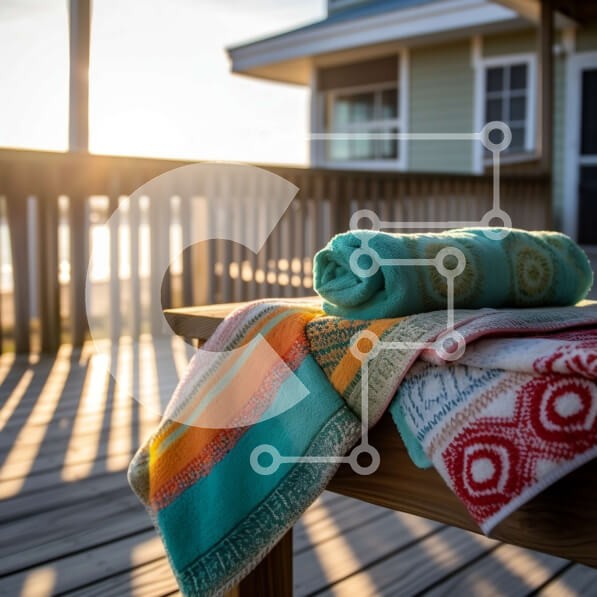| Όνομα Προϊόντος | Intra Συλλεκτικό Ξύλινο Παζλ Plywood 4mm - Όμορφη εικόνα μιας πολύχρωμης πετσέτας παραλίας σε έναν ξύλινο πάγκο με θέα στον ωκεανό Σε Ξύλινο Κουτί - Διαστάσεις Puzzle: 10x10 cm – 25 κομμάτια |