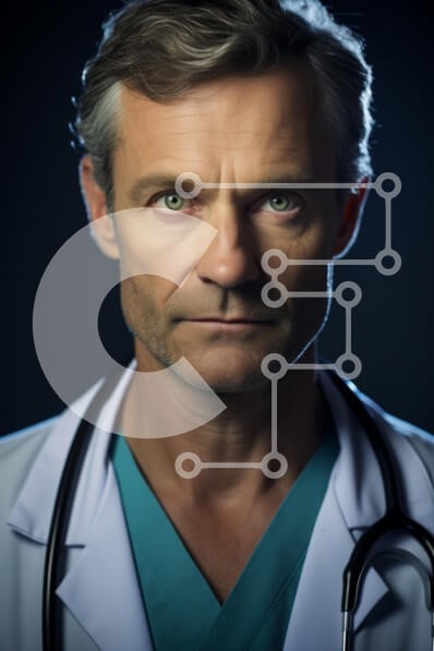 Υπάρχει δυνατότητα προσωποποίησης με δική σας φωτογραφία και προσαρμογής διαστάσεων κατόπιν παραγγελίας. Το συγεκεριμενο puzzle παρουσιαζει Αυτή η εικόνα απεικονίζει έναν σοβαρό άνδρα γιατρό με κοντά, γκρίζα μαλλιά και διαπεραστικά πράσινα μάτια. Φοράει ένα γαλαζοπράσινο κάλυμμα κάτω από ένα λευκό εργαστηριακό παλτό, το οποίο προσθέτει στην επαγγελματική του εμφάνιση. Επιπλέον, έχει ένα στηθοσκόπιο τυλιγμένο στο λ
