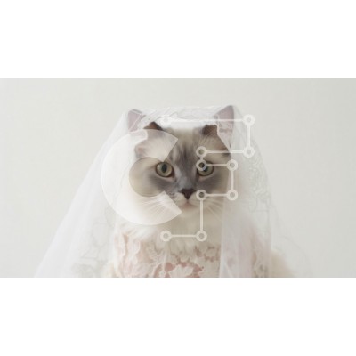 Υπάρχει δυνατότητα προσωποποίησης με δική σας φωτογραφία και προσαρμογής διαστάσεων κατόπιν παραγγελίας. Το συγεκεριμενο puzzle παρουσιαζει Η εικόνα απεικονίζει μια γάτα ντυμένη με ένα κομψό λευκό πέπλο γάμου. Τα μάτια της γάτας είναι στραμμένα στην κάμερα, υποδηλώνοντας ότι ενδιαφέρεται για το θέμα της φωτογραφίας. Μπορεί επίσης να είναι περίεργο για το περιβάλλον του, καθώς φαίνεται να κοιτάζει κάτι ή κάποιον κο