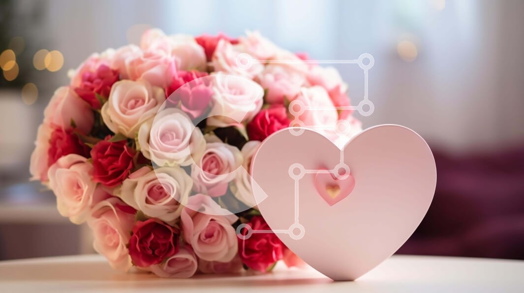 Υπάρχει δυνατότητα προσωποποίησης με δική σας φωτογραφία και προσαρμογής διαστάσεων κατόπιν παραγγελίας. Το συγεκεριμενο puzzle παρουσιαζει Αυτή η εικόνα παρουσιάζει ένα εκπληκτικό μπουκέτο από ροζ και λευκά τριαντάφυλλα, όμορφα τοποθετημένα σε ένα τραπέζι. Ένα κουτί από χαρτόνι σε σχήμα καρδιάς, διακοσμημένο με περίπλοκες λεπτομέρειες, βρίσκεται σε περίοπτη θέση στο κέντρο της εικόνας. Η σκηνή τοποθετείται σε μια