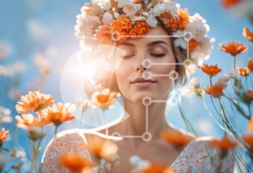 Υπάρχει δυνατότητα προσωποποίησης με δική σας φωτογραφία και προσαρμογής διαστάσεων κατόπιν παραγγελίας. Το συγεκεριμενο puzzle παρουσιαζει Αυτή η εικόνα παρουσιάζει μια όμορφη νεαρή γυναίκα που στέκεται σε ένα χωράφι με λουλούδια. Φοράει ένα πορτοκαλί λουλούδι στέμμα και έχει κλειστά μάτια, υποδηλώνοντας μια αίσθηση χαλάρωσης και απόλαυσης της φύσης. Αυτή η φωτογραφία μπορεί να χρησιμοποιηθεί για να προωθήσει τη