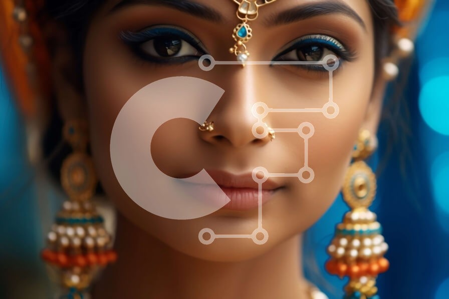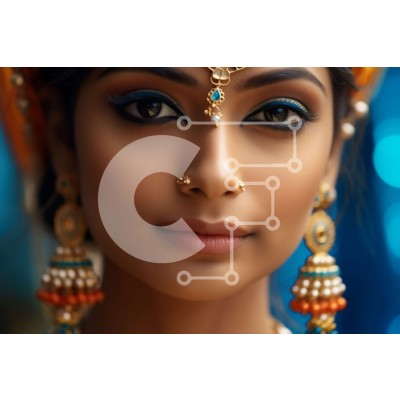 Υπάρχει δυνατότητα προσωποποίησης με δική σας φωτογραφία και προσαρμογής διαστάσεων κατόπιν παραγγελίας. Το συγεκεριμενο puzzle παρουσιαζει Αυτή η εικόνα είναι μιας γυναίκας που φοράει παραδοσιακά ινδικά κοσμήματα και μακιγιάζ. Τα κοσμήματα είναι περίτεχνα και περίπλοκα, με πολύχρωμους πολύτιμους λίθους και λεπτή μεταλλοτεχνία. Το μακιγιάζ της γυναίκας είναι εξίσου λεπτομερές, με έντονα χρώματα και περίπλοκα σχέδι