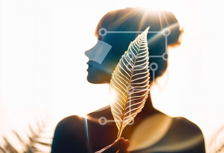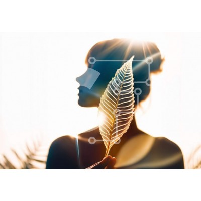 Υπάρχει δυνατότητα προσωποποίησης με δική σας φωτογραφία και προσαρμογής διαστάσεων κατόπιν παραγγελίας. Το συγεκεριμενο puzzle παρουσιαζει Αυτή η εικόνα παρουσιάζει μια σιλουέτα μιας γυναίκας με το χέρι της να ακουμπά σε ένα αφηρημένο φύλλο. Το παιχνίδι του φωτός και της σκιάς δημιουργεί μια οπτικά εντυπωσιακή σύνθεση. Η εικόνα μεταδίδει μια αίσθηση μυστηρίου και κομψότητας, καθιστώντας την κατάλληλη για έργα ομο