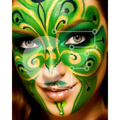 Υπάρχει δυνατότητα προσωποποίησης με δική σας φωτογραφία και προσαρμογής διαστάσεων κατόπιν παραγγελίας. Το συγεκεριμενο puzzle παρουσιαζει Αυτή η φωτογραφία παρουσιάζει ένα εντυπωσιακό μοντέλο με πράσινη μπογιά προσώπου στο πρόσωπό της, φορώντας ένα κομψό πράσινο και μαύρο ρούχο. Τα μάτια του μοντέλου σκάνε στο πράσινο χρώμα, δημιουργώντας μια δραματική εμφάνιση που θα ξεχωρίσει σε κάθε έργο. Ένα μοναδικό puzzle