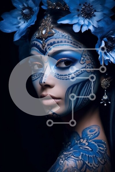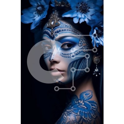 Υπάρχει δυνατότητα προσωποποίησης με δική σας φωτογραφία και προσαρμογής διαστάσεων κατόπιν παραγγελίας. Το συγεκεριμενο puzzle παρουσιαζει Αυτή η εικόνα απεικονίζει μια γυναίκα που φορά μπλε μπογιά προσώπου και μια φλοράλ κόμμωση. Το μπλε χρώμα προσώπου είναι περίπλοκο και καλύπτει το μεγαλύτερο μέρος του προσώπου της, ενώ η φλοράλ κόμμωση προσθέτει μια επιπλέον πινελιά ομορφιάς. Το βλέμμα της γυναίκας είναι στρα